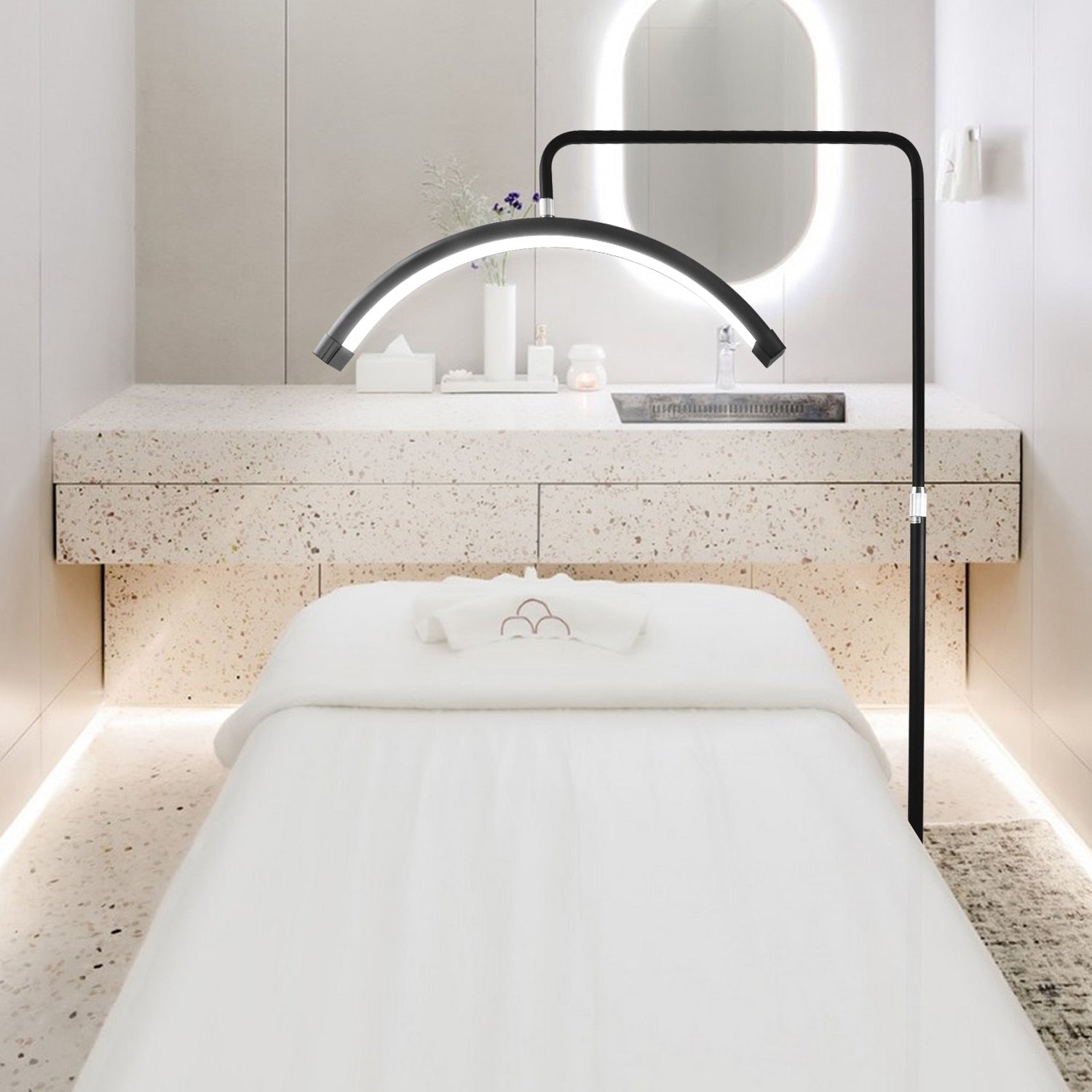 The LED Lash Light is a versatile and convenient lighting solution for makeup and beauty salons, as well as for eyebrow tattooing, and lash services. The light is shaped like a half-ring, providing evenly distributed, shadow-free illumination. The light is also dimmable, allowing you to adjust the brightness to suit your needs. It comes with a sturdy stand and a phone holder, making it easy to use with your smartphone. Whether you're a professional makeup artist or simply looking to up your selfie game, this light is an excellent choice.