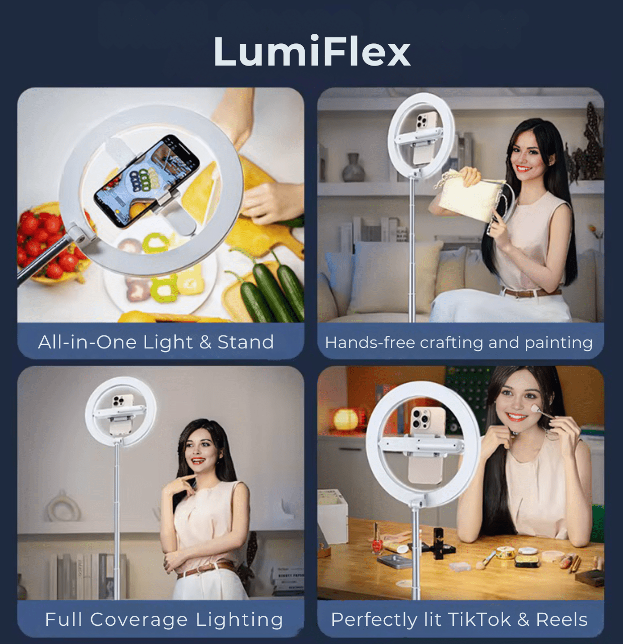 - All-in-One Design: Combines a stable stand, ring light, and adjustable phone mount for a complete creator setup.