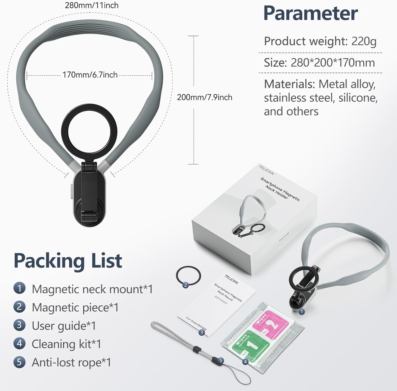 • Ergonomic Silicone Strap: Experience unparalleled comfort with the NeckFlex Snap's soft, flexible silicone strap. Designed to rest gently on your neck, it eliminates strain and ensures your device is comfortably accessible throughout the day.