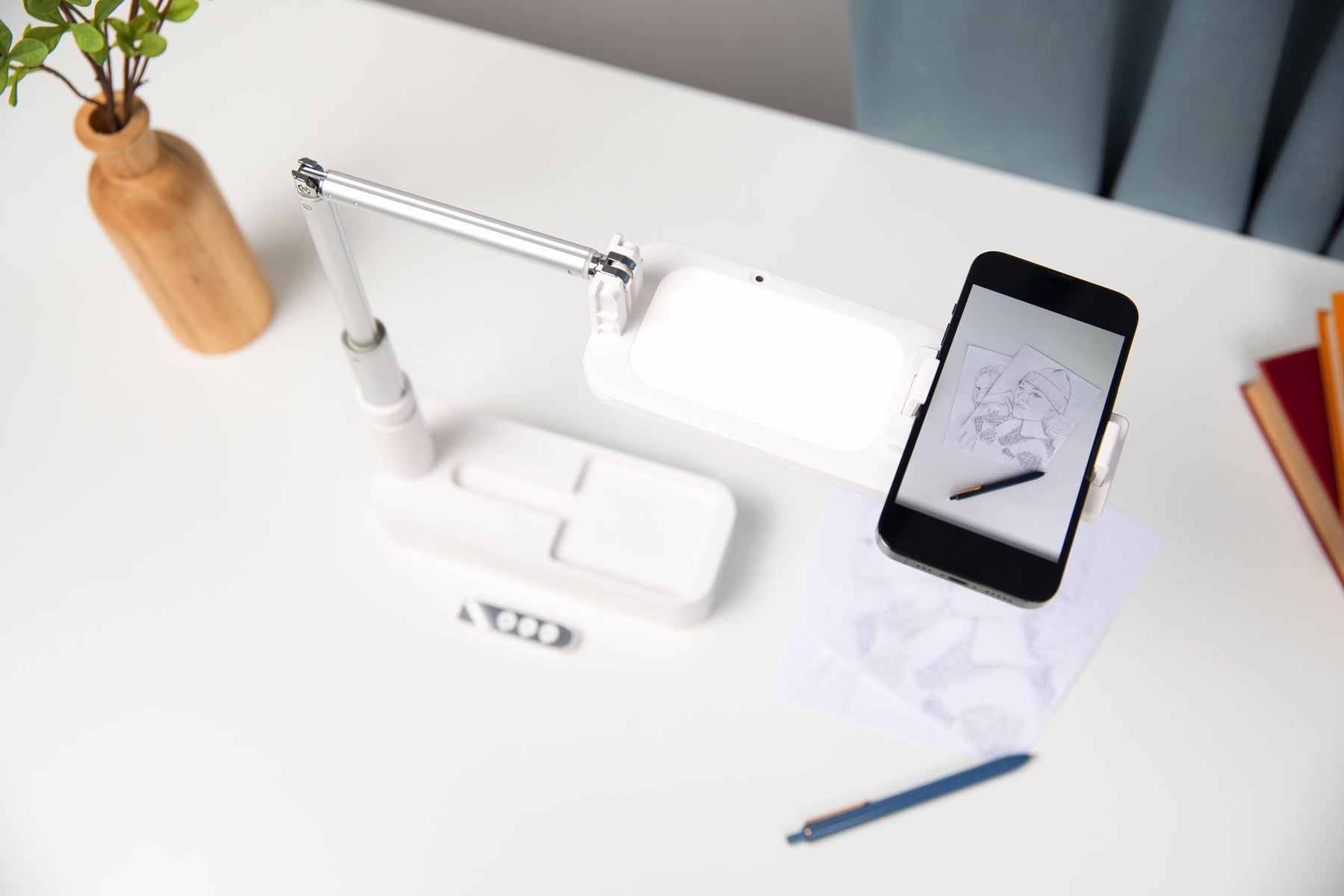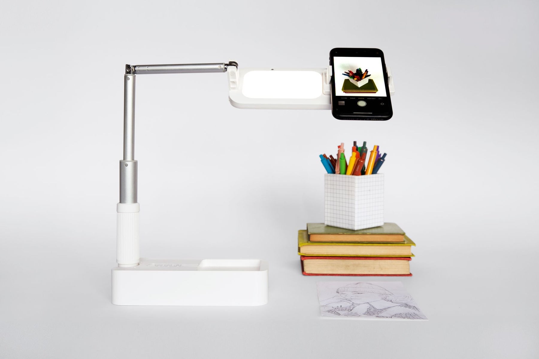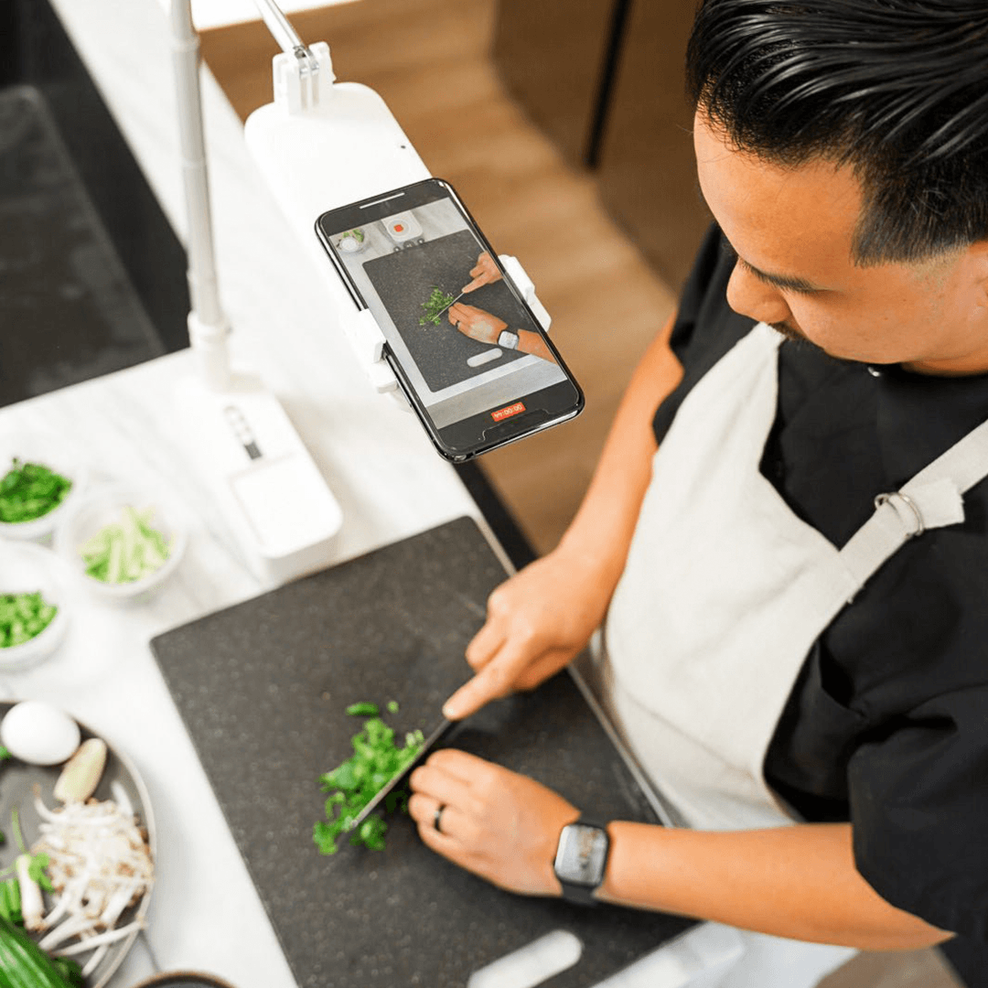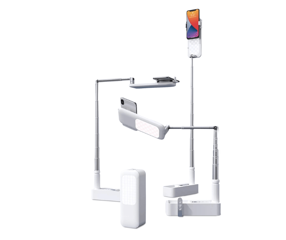 At the 90 degrees configuration, big phones like iPhone 12/13 Pro Max, Samsung S21 Ultra as examples will be fully supported. UNIQU lighting kit can support up to 400-500 grams in the overhead configuration.